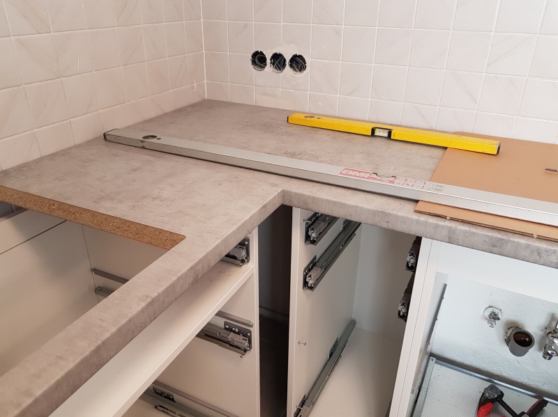 Es sieht so aus als wurde die bestehende Thekenplatte weiter verwendet.