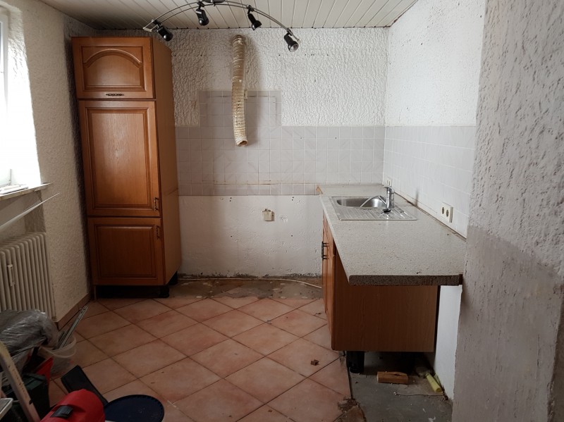 So hier ist nun meine Küche, die ich mir nach Aussage eines Forenmitgliedes erstmal schön saufen muss und ich in meinem nächsten Haus, dann alles bestimmt besser machen werde.
