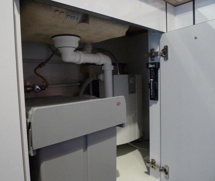 Armatur: Kludi Einhebelmischer Bingo Star (ich wollte einen hohen runden Hahn für die Balkongießkanne, da kamen wegen des Niederdrucksystems (Warmwasser kommt aus einem E-Boiler unten im Schrank) nicht viele in Frage).
