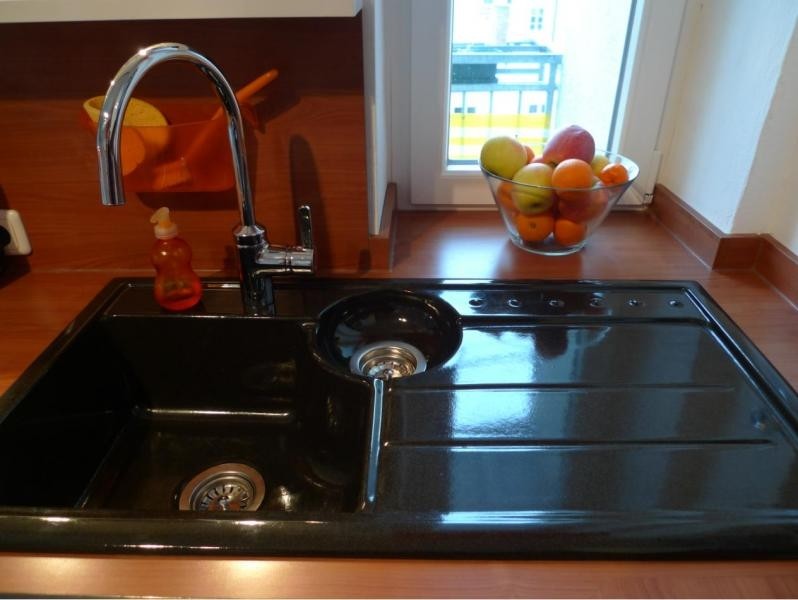 Spüle: von systemceram, Keradomo Sinus 95, Farbe nero. Die bewährt sich super und freut mich richtig!
