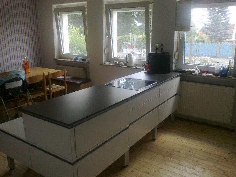 Der Anschlag des Kühlschrankes wird morgen, wenn die Dunstabzugshaube gebracht wird, nach links umgebaut. Fotos folgen dann noch, konnte es aber nicht abwarten, die Küche hier zu posten........