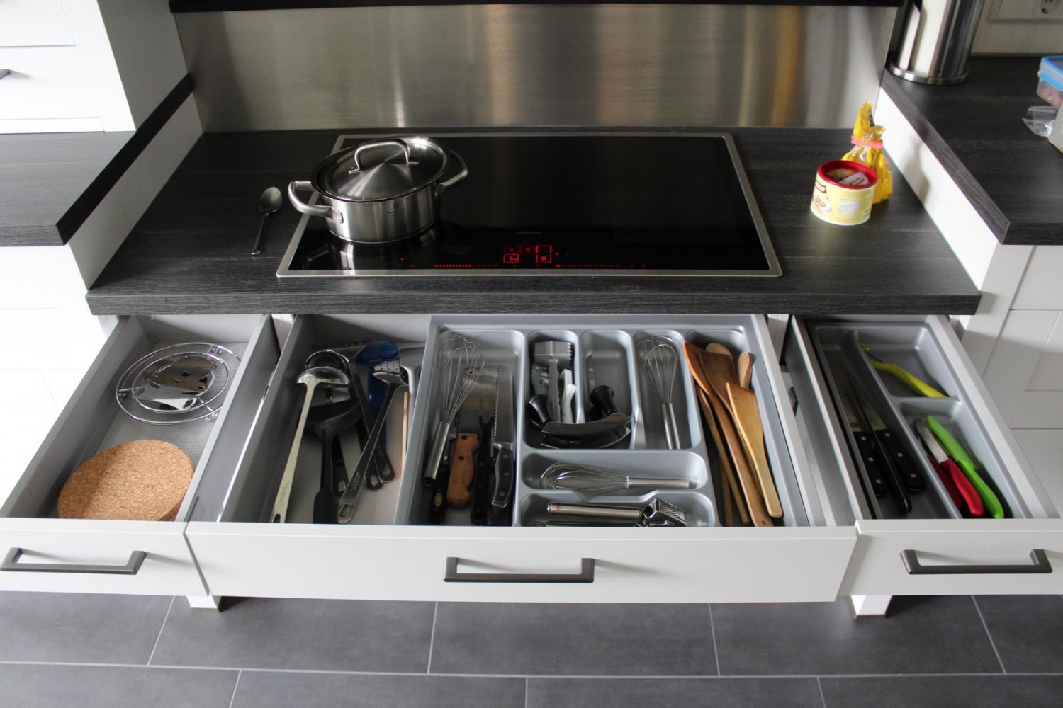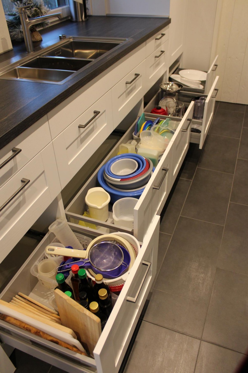 Überhaupt, der Platz! Zu zweit hantieren ist kein Problem mehr, jeder geht an eine Seite von der Spüle und man kommt sich nicht in die Quere, Abstellflächen sind überall, alles hat seinen Platz und ist gut zugänglich. Es ist einfach nur herrlich und macht Spaß.