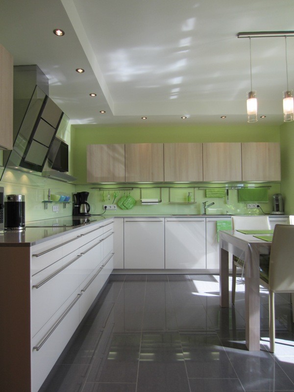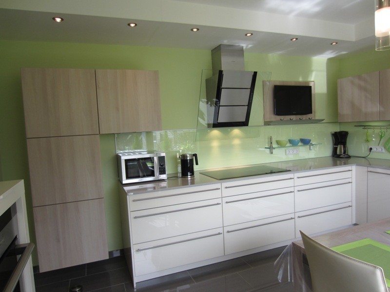 Mit einiger Verspätung möchte ich auch unsere neue Küche hier bei den fertiggestellten Küchen präsentieren. Manche von Euch erinnern sich vielleicht noch an meinen Planungsthread „Neueinrichtung 15 m2 Wohnküche“. Aufgebaut wurde die Küche Anfang Mai 2012, fertiggestellt jedoch erst im August 2012 (Die Klarglas-Nischenrückwand wurde später geliefert).