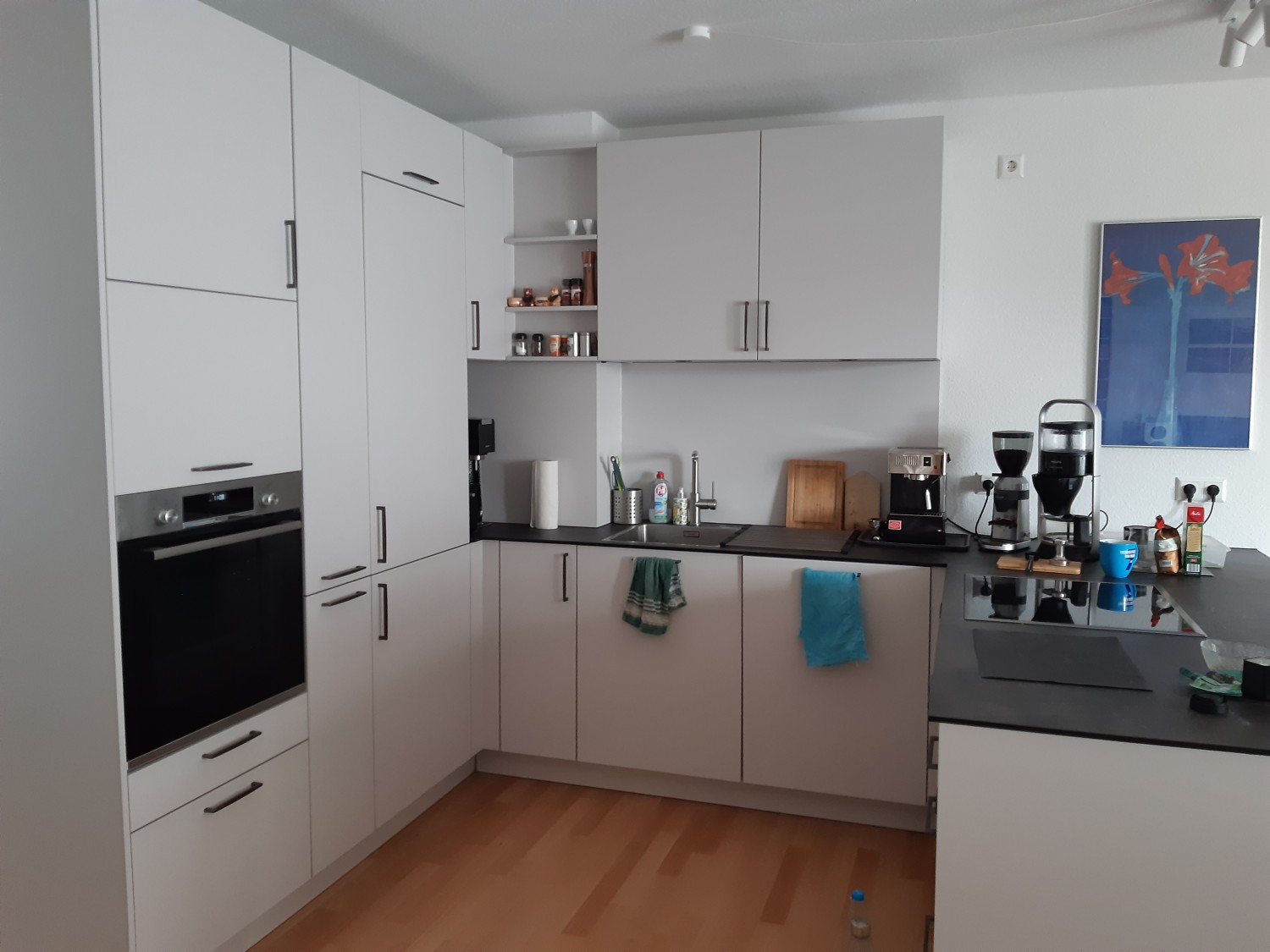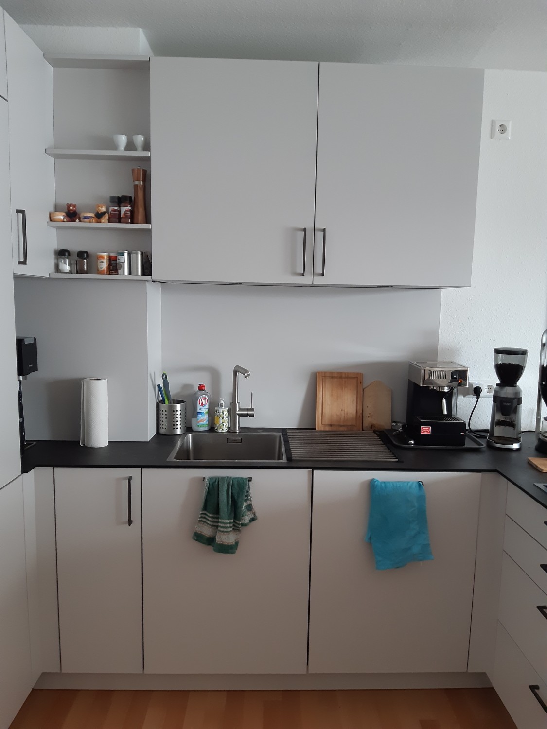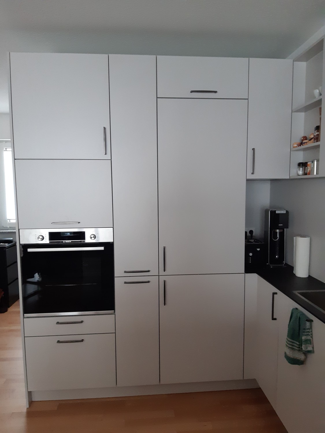 Herausforderung für meine Küchenplanung war: Küche für eine Wohnung, die wir erst vermieten und später selbst bewohnen wollen.Ziel war, genügend Geräte, Stauraum...zu haben und trotzdem der Küche nicht zu großen Raum zu geben, also noch genug Ess-/Wohnraum zu haben.