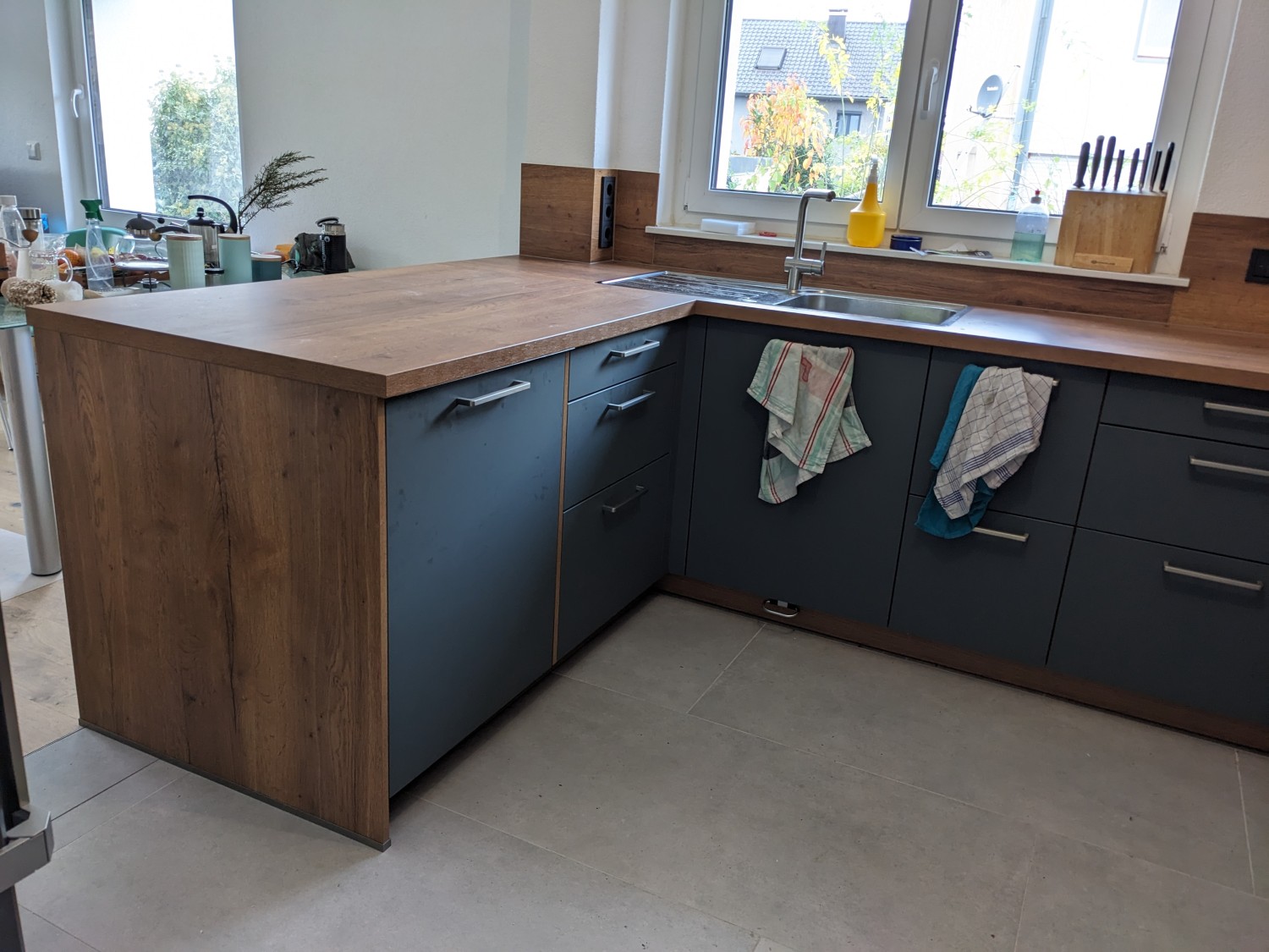 Die Planung haben wir Mitte Juni begonnen. Durch den vielen wertvollen Input des Küchenforums hatten wir zahlreiche Korrekturen und Änderungswünsche, denen aber allen entsprochen werden konnte. Wir haben die Küche dann Anfang August bestellt und einen Liefertermin Mitte Oktober zugesagt bekommen. Der Umzug war für Ende September geplant. Im Endeffekt haben wir knapp 3 Wochen ganz ohne Küche gewohnt, konnten das aber ganz gut überbrücken.