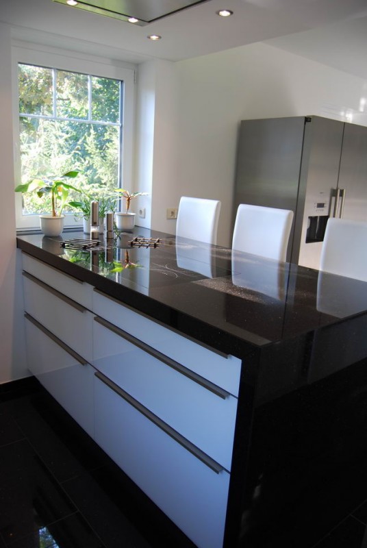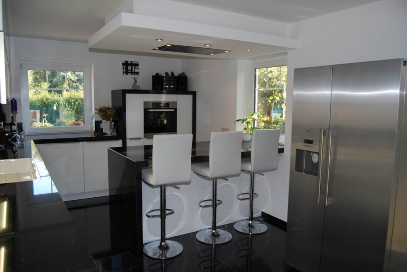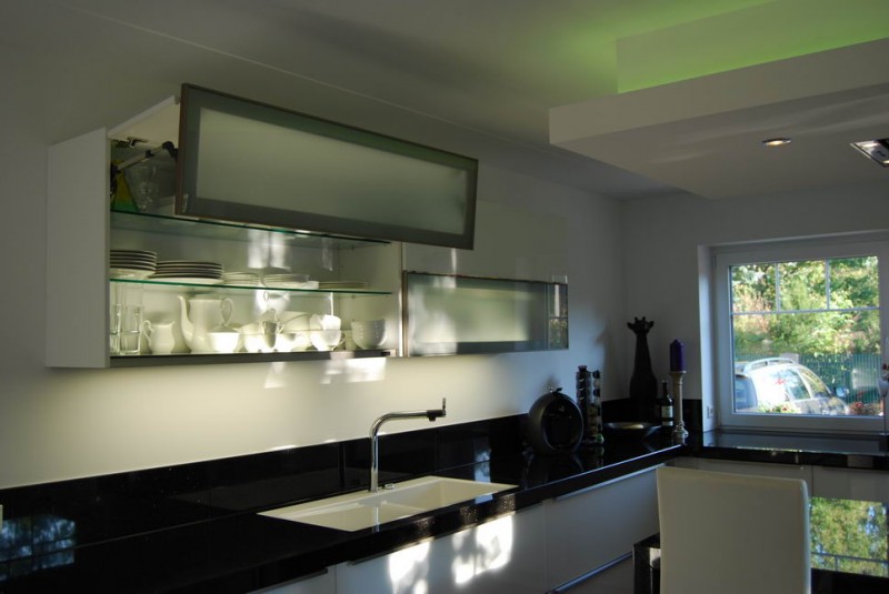 Schick und praktisch! Das mit der Deckenkostruktion ist Klasse und natürlich beleuchtungsmäßig das Highlight mit dem Block. Fehlt denn eigentlich nicht ein wenig Licht im Arbeitsplattenbereich, oder sind da die lampen nicht im Bild(?).