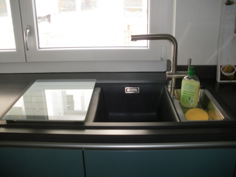 Als Spüle haben wir uns die Axia II 6S in Anthrazit von Blanco mit der Armatur Franke Atlas Edelstahl ausgesucht.