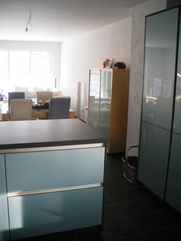 Zur Küche ansich: Wir wollten den zur Verfügung stehenden Platz möglichst gut nutzen und so fiel ziemlich schnell die Entscheidung, auf die Tür zur Diele zu verzichten. An dieser Stelle hängt heute die Abzugshaube. Mein Wunsch war es Hochschränke unterzubringen, was letztlich ja auch gelungen ist :-) Weiter war mir eine moderne Optik wichtig, deshalb haben wir uns für eine grifflose Küche entschieden. Die Auszüge/Türen lassen sich übrigens auch ohne Griffe problemlos öffnen.
