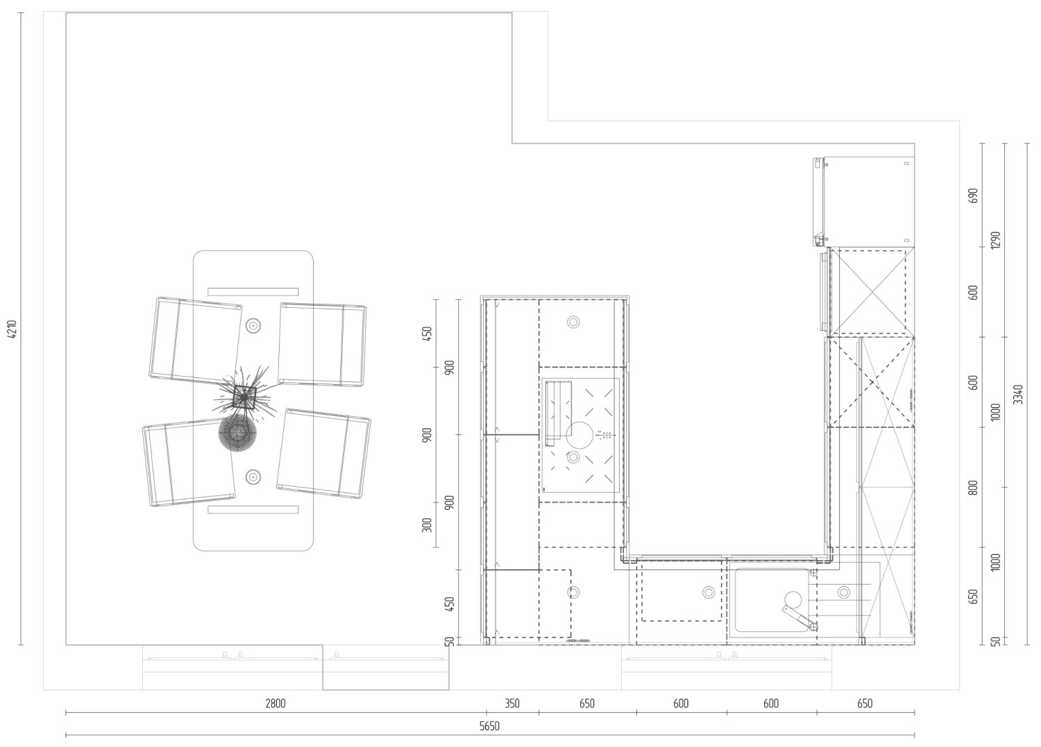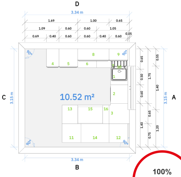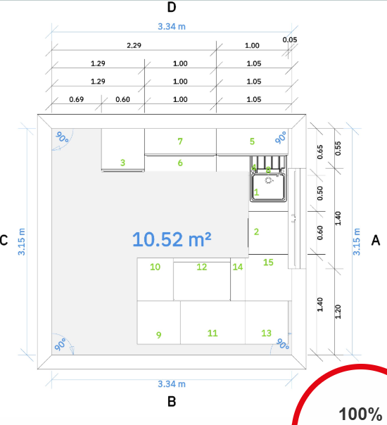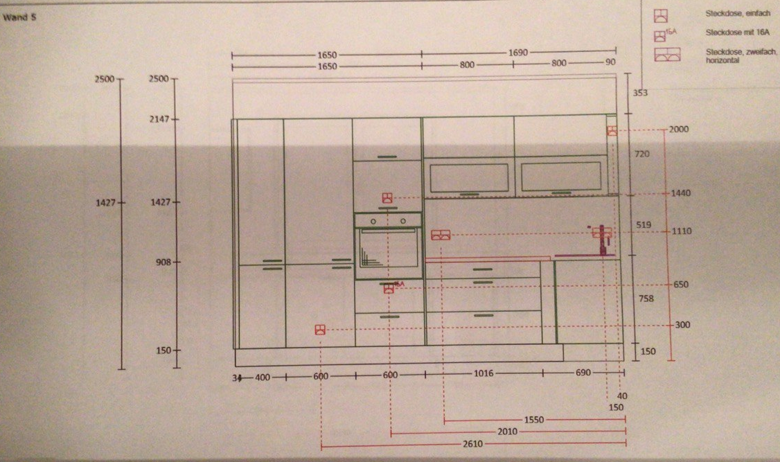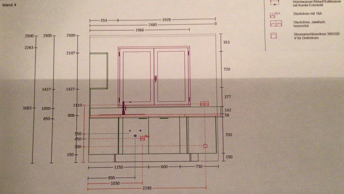 Hier war bereits jemand zum Vermessen vor Ort, auf dessen Basis wurde bereits eine Version der Küchenplanung erstellt.