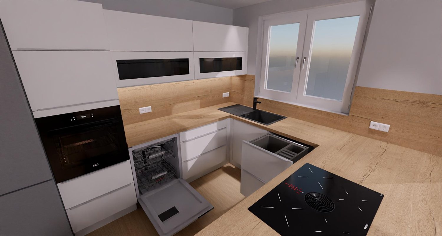 Die Küche sollte in Wasseranschlussnähe Platz für ein Filtersystem bieten (ca. 30x40cm). Zudem würde ich gerne den Müll in die Küche integrieren, entweder als Auszugsschrank unter der Spüle oder in die Schrankflächen.
