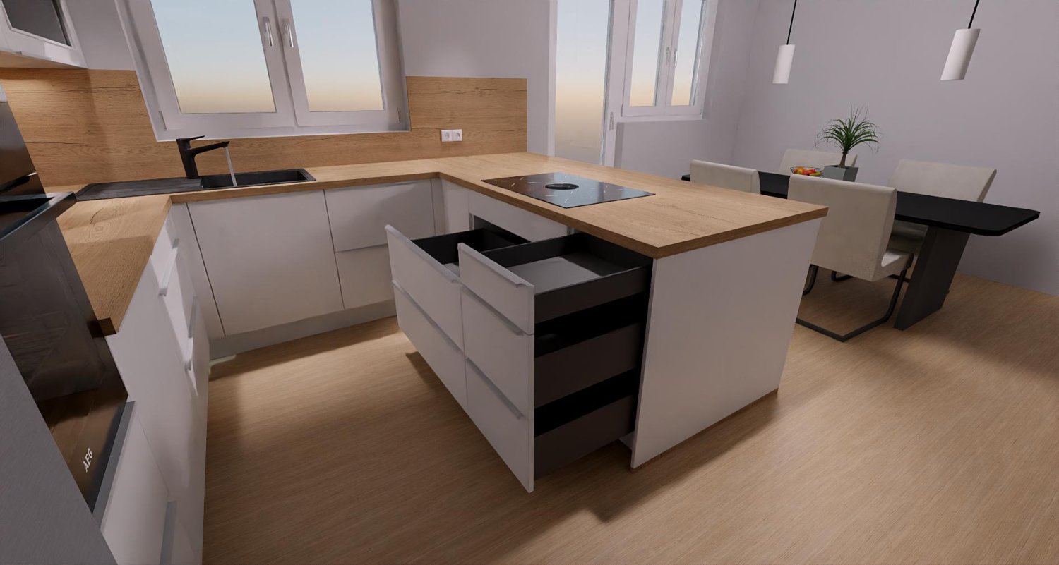 U-Küche mit Insel für eine 4-Zimmer Wohnung (Vermietung)