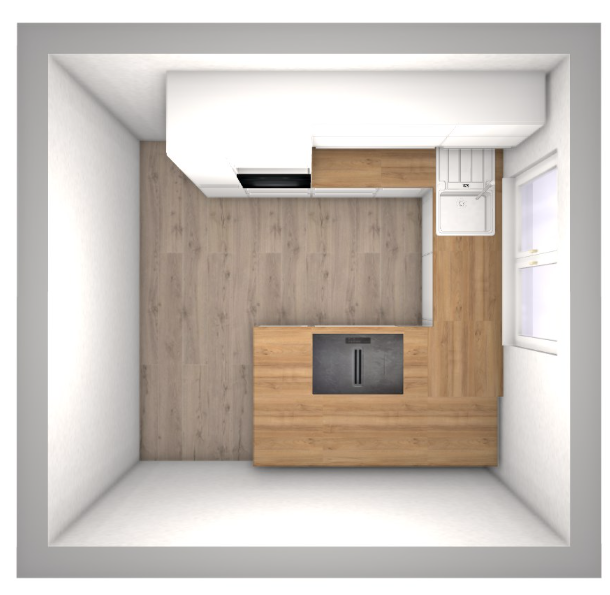 Die neue Küche sollte Mülleimer integriert haben und Platz für eine Wasserfilteranlage bieten (ca. 30x40cm). Zudem benötigt die Küche am besten auch Stauraum für Vorräte. Die Küche wird mit Insel geplant, dabei kann auf der Insel das Kochfeld liegen, muss aber nicht.