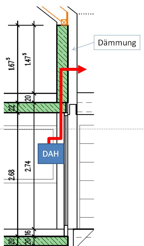 Soll das 150mm Abluftrohr in der Außenwand, über die gesamte Länge, liegen?