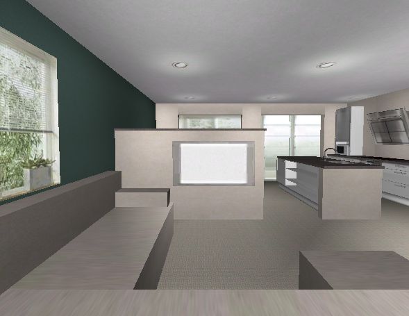 Ich habe die Insel jetzt doch lieber 100 cm tief gemacht. Eine Trennwand mit ca. 110 bis 115 cm sah blöd im Vergleich zur Trennwand beim Fernseher aus.