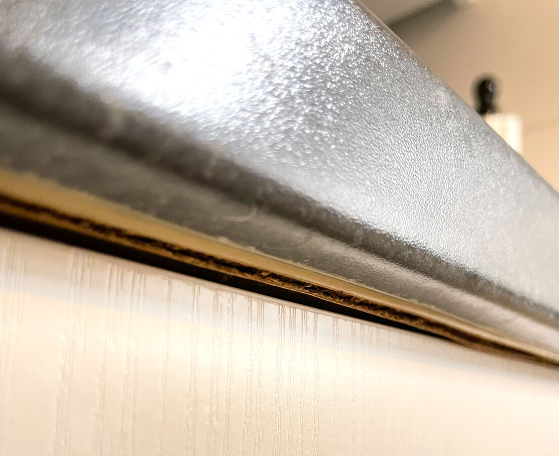 nicht zu argumentieren, bei der Unterseite zumindest. Da ist ja sogar über dem unteren Übergang von Kante zur Papierschicht eine "Dichtfuge" gezogen.
