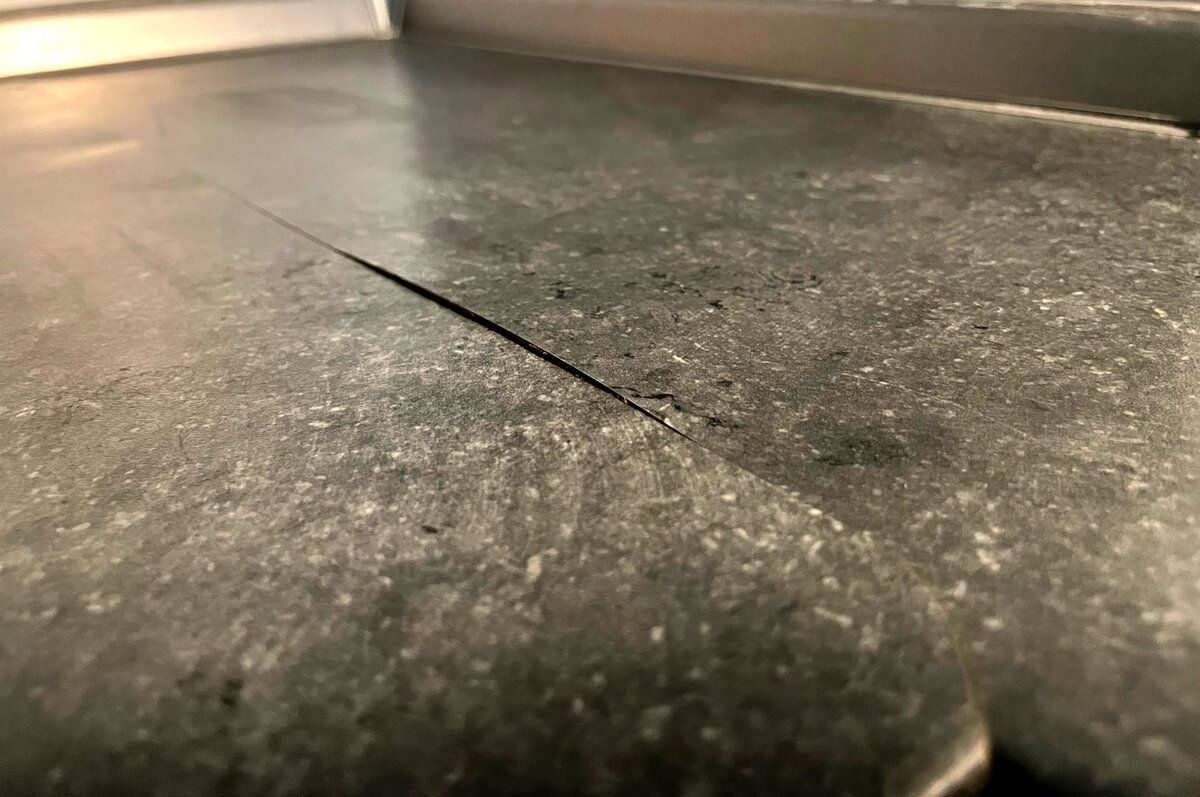 Das ist doch eine Postforming Kante, da ist mit Montagefehler