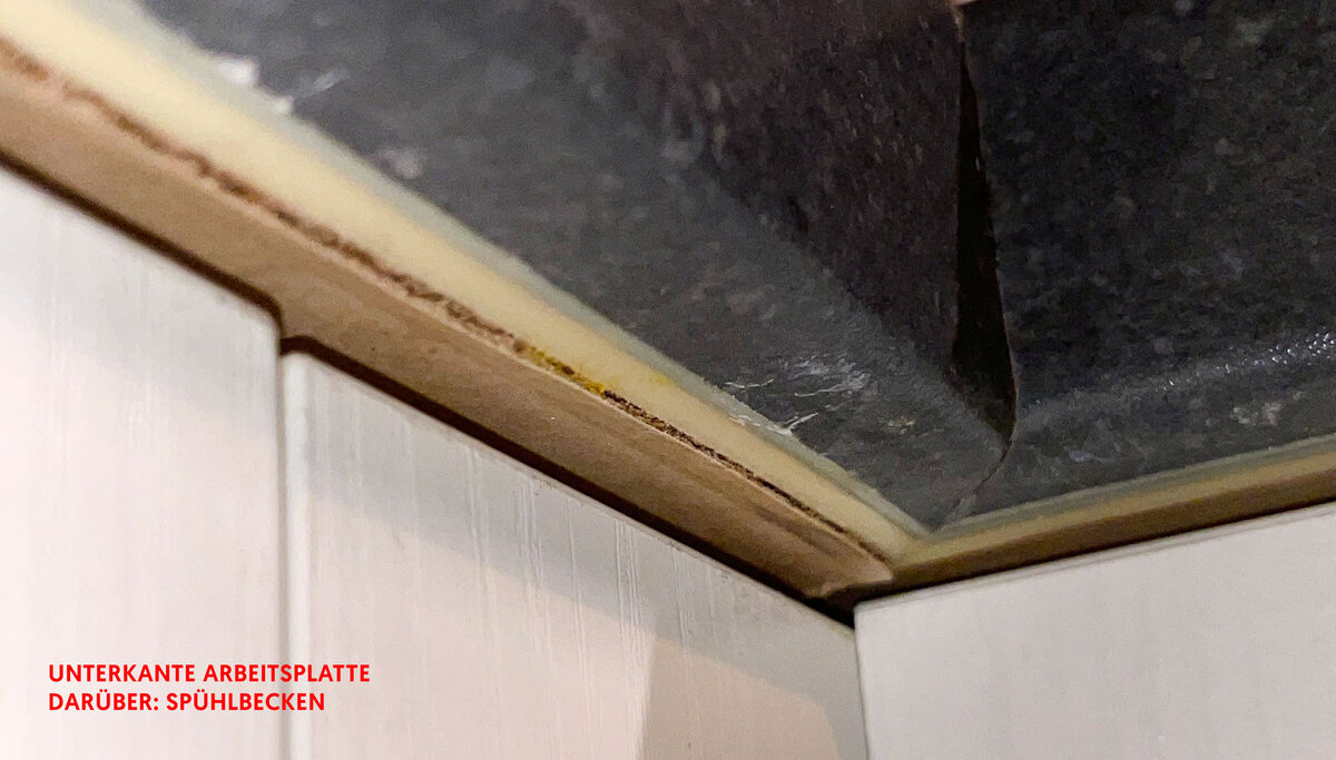 Oder ist innen die Ausschnittkante der Spüle schlecht abgedichtet und es quillt dann unten Richtung Arbeitsplattenkante weiter?