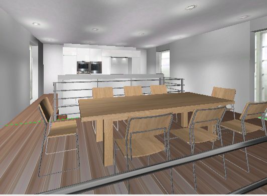 Was aus unserer Sicht für die Lösung Spüle auf der Insel spräche, ist die Nähe zwischen Spüle, Hauptarbeitsfläche und Mülleimer. Dagegen spricht aber, wie ich oben schon bemerkt habe, dass man beim Schneiden das Kochfeld nicht im Blick haben kann. Uns ist außerdem wichtig, dass man nach dem Schneiden einen kurzen Weg zum Kochfeld hat. Nicht stören würde uns, dass wir uns nach dem Gemüsewaschen erst umdrehen müssten, um zum Hauptarbeitsplatz mit Brettchen zu kommen. Immer alles an Gemüse und Fleisch schon vorzuschneiden und dann erst den Herd anzuwerfen, können wir uns nicht vorstellen. Auch wenn die