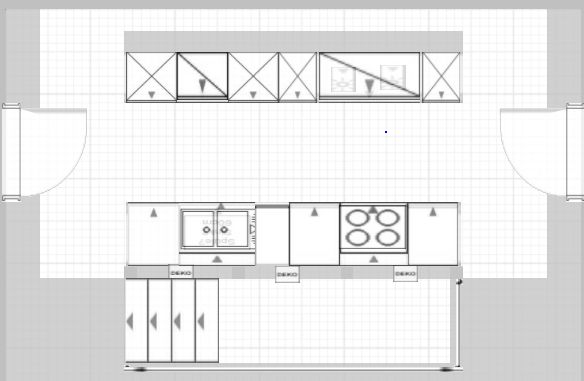 Optisch gefällt uns die Lösung Spüle auf der Insel zwar besser, weil die Nordzeile ein runderes Bild abgibt mit der integrierten DAH, die eine bündige Frontfläche mit den anderen Schränken bildet. Andererseits finden wir die Oberschränke aber schöner z.B. zur Verstauung von Gläsern und Tassen als ein Fach im