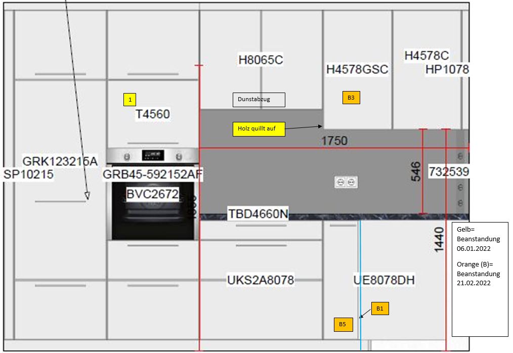 Vielleicht mal ein Foto der Küche und die Stellen markieren, wo diese Lackschäden auftreten. Statt Foto Küche evtl. Scan vom Aufstellungsplan aus der Auftragsbestätigung.