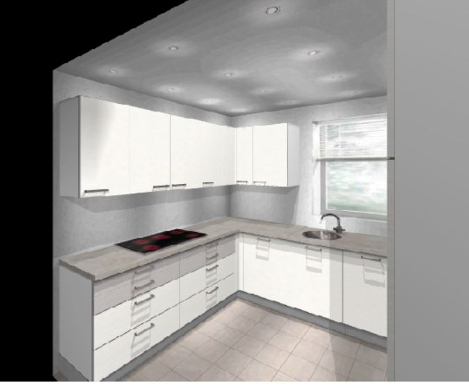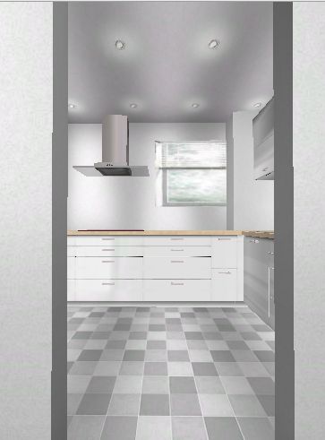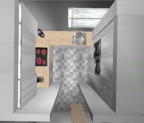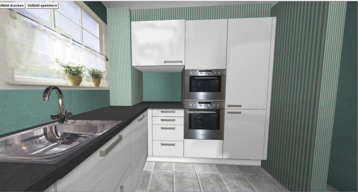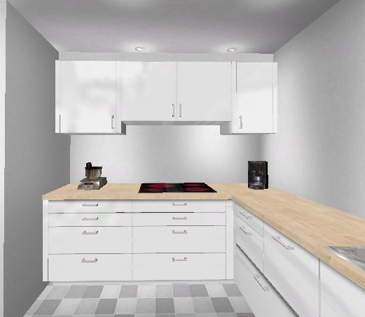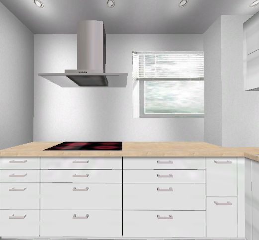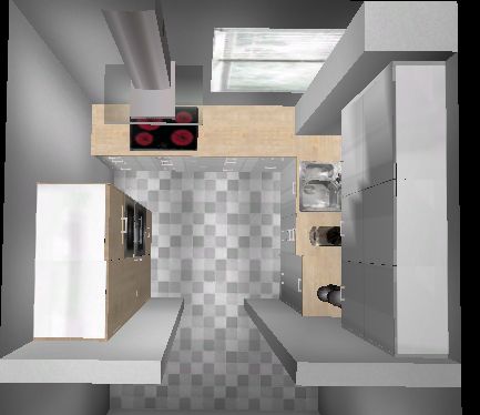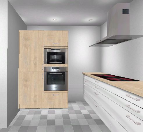 nachdem ich jetzt 2 Wochen nur mit Küche und Geräten beschäftigt war hier meine voraussichtliche "Endlösung". Es wird jetzt doch wieder eine Flachchirmhaube - an einen Lüfterbaustein traut sich keiner so recht ran...