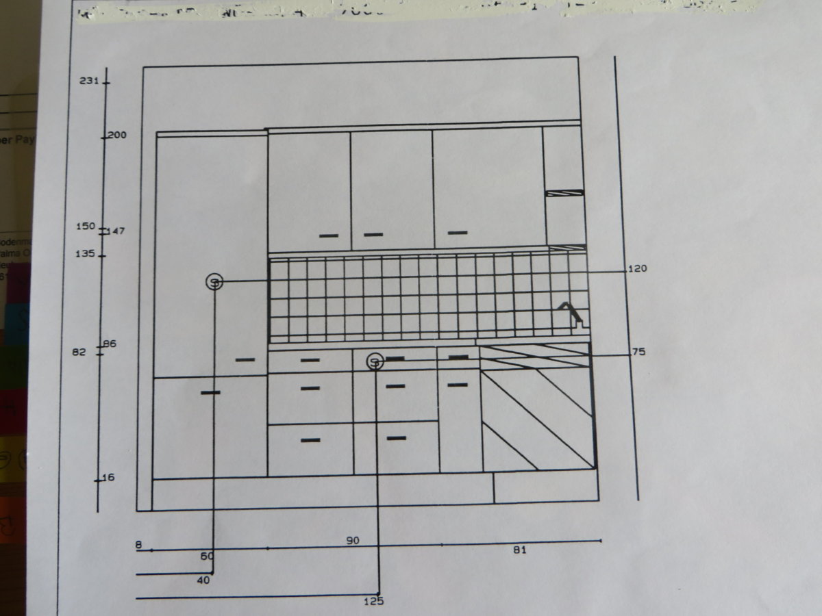 Der Alnoplan ist von der Ausrichtung her mit dem Bauplan identisch. Habe das Foto gedreht und die restlichen Ansichten der alten Küche beigefügt.