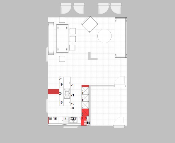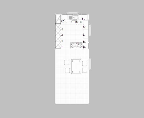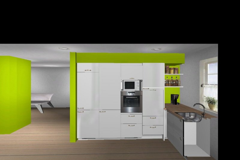 Hallo, was genau steht noch in dem Raum? Also welche Maße haben die anderen Möbel? Wenn man diese zumindest durch PLatzahlter andeutet kann man sich nachher den Gesamteindruck besser vorstellen und auch ob die Küche lieber 10cm kürzer oder 30cm länger werden sollte ;-)