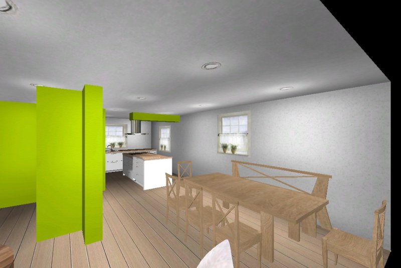 Bisher war aber deine Küche ein geschlossener Raum und geplant ist jetzt offen mit einer Feuerstelle. Das ist der Unterschied.