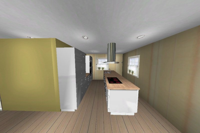 Mela, vielen Dank, also stauraummäßig sieht das schon ziemlich super aus!! Aber das ist mir irgendwie noch nicht so ganz geheuer, die Möbel mitten ins Zimmer zu stellen:-\ ich war halt noch nie bei jemanden der so kocht???!!! Kenne nur so traditionelle und(unpraktische) Küchen! Heißt natürlich nicht, dass ich für nichts neues offen bin, na ja zum Glück haben wir noch etwas Zeit, eigentlich sollte es schon dieses Jahr so weit sein, aber wenn ich mir das so überlege, sparen wir lieber paar Monate länger.:-) Weiß jetzt nicht, ob das mit mit der Spüle so geht, weil der Abfluß in der Wand verläuft??! Aber hier müßte mein Mann natürlich nichts an den Fenstern machen! Und dann könnte es an dieser Stelle auch evtl. eine Ablufthaube werden (je nachdem was der Schornsteinfeger sagt). Gute Nacht. Nelly