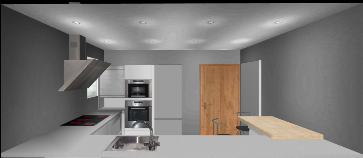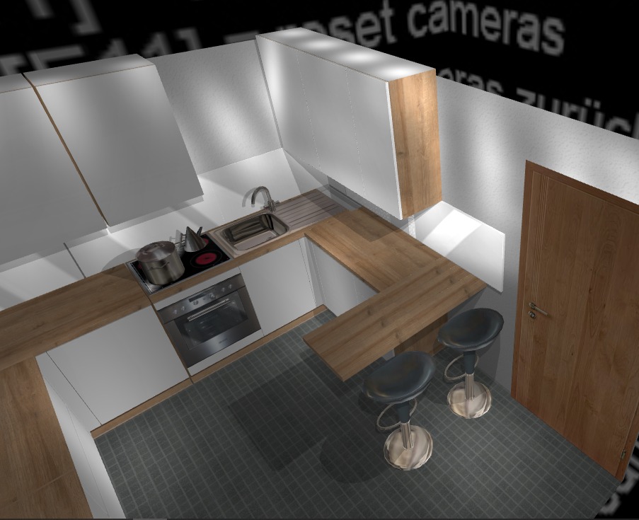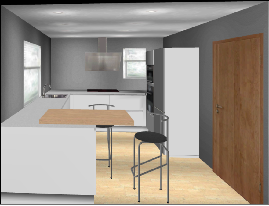 Jetzt bitte noch ein Bild vom Gesamtgrundriss (auch ohne Masse) mit eingezeichnetem Eckschrank. Bitte ein Fotos von der Küche. Wie man dank des Grundrisses erkennen kann, knallt jedem, der an der Theke sitzt, die Türe in den Rücken.. das kann ja nicht die Idee dahinter sein!