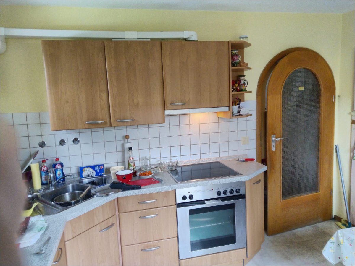 Danke für die Antworten! Also der Einbauschrank ist in einem hellen Farbton... so zwischen weiß und sehr hellem grau. Wir renovieren die Wohnung meiner Großeltern in meinem Elternhaus. Deshalb müssen eben bestimmte Dinge die mir wichtig sind bleiben dazu gehört der Einbauschrank weil ihn mein Opa gebaut hat und auch die Küchentür die ein maßangefertigter Rundbogen ist. Die Tür, die wirklich so in den Raum rein öffnet, zu drehen ist wahrscheinlich nicht möglich... der Bauleiter weiß noch nicht ob man den Höhenunterschied zwischen Küche und Flur (Flur ist ca 2cm höher als die anderen Räume) ausgleichen kann, dann ginge das wegen dem Anschlag schon nicht. Ich werde heute nochmal Bilder machen.... da die Umräumerei schon angefangen hat sieht alles gerade sehr durcheinander aus