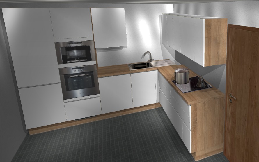 Ich bin sehr unglücklich mit den Ecken. Im Alno Küchenplaner gibt es keine Eckspülen, die wäre mir lieber. Der freie Raum über der Spüle muss bleiben weil dort ein kleines Eckfenster ist.