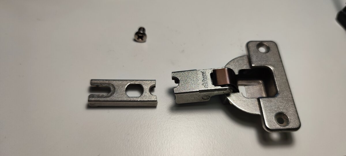 das Blum Scharnier bestehend aus den Einzelteilen