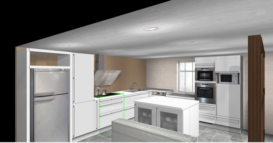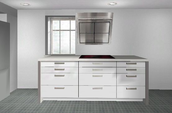 4.) Der Mini-Unterschrank links neben dem Kochfeld, den ich eigentlich nicht brauche und bei dem ich auch nicht weiss, ob es sowas bei Ikea gibt. Ich habe ihn nur eingeplant, damit wenigstens ein bisschen Platz zu den Seitenschränken linker Hand sind.