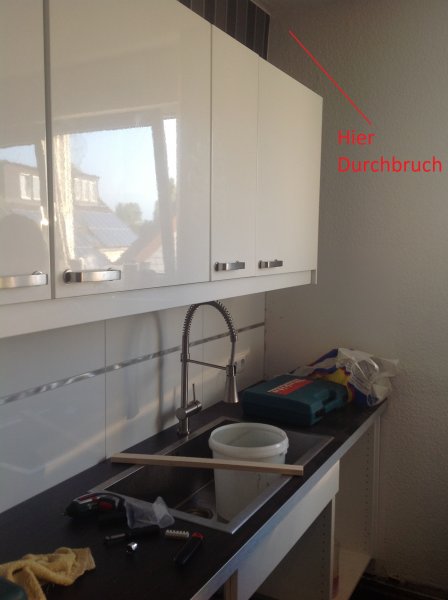 Dort würde ich gerne den Durchbruch haben. Denn man könnte auf dem Stück der Hängeschränke den externen Motor anbringen, ohne das der irgendwo im Raum hängt.