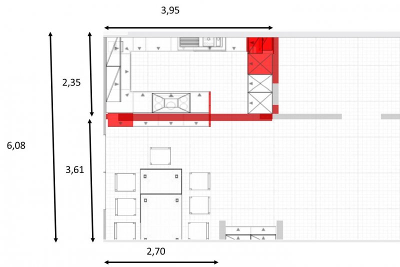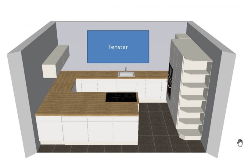 Zu deiner Planung, ich finde das U ungünstig zum Kochen mit Gästen. Damit verkleinerst du die freie Fläche in der Küche und man steht sich gegesseitig, schnell im Wege.