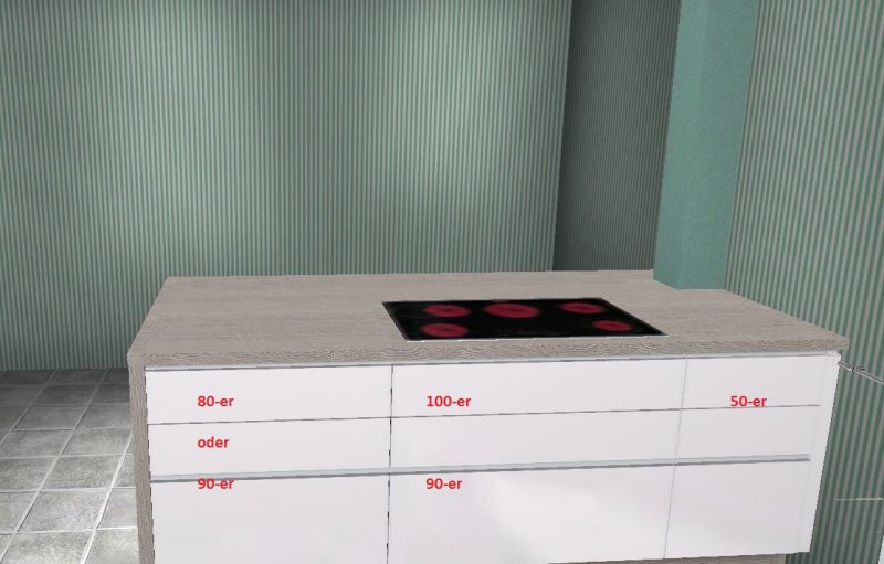 Wir haben eine Aufteilung von 60,80,60, bedingt durch Restwand und Abzughaube.....