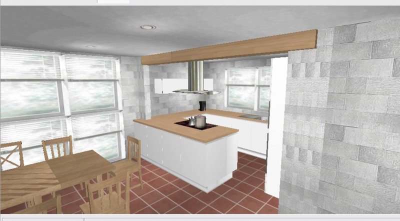 Fenster kann wohl nicht getauscht werden? Das wäre wegen der Arbeitshöhe grade auf der Spülenseite besser. Wenn der Raum unterkellert ist, wäre eine Wasserverlegung auf die Insel machbar.