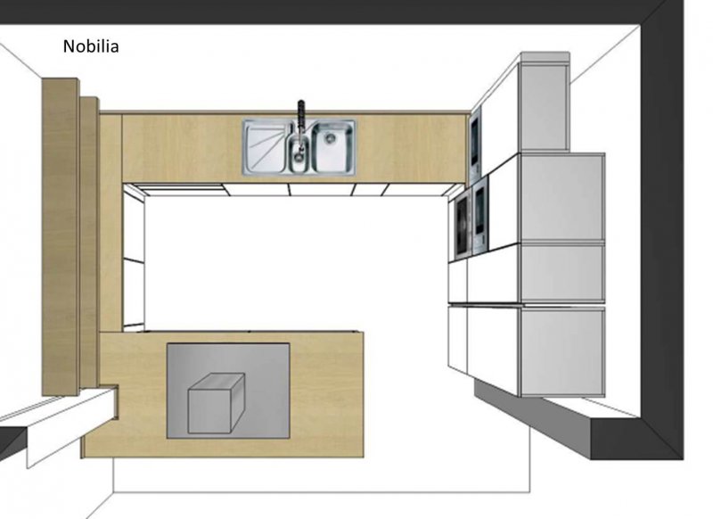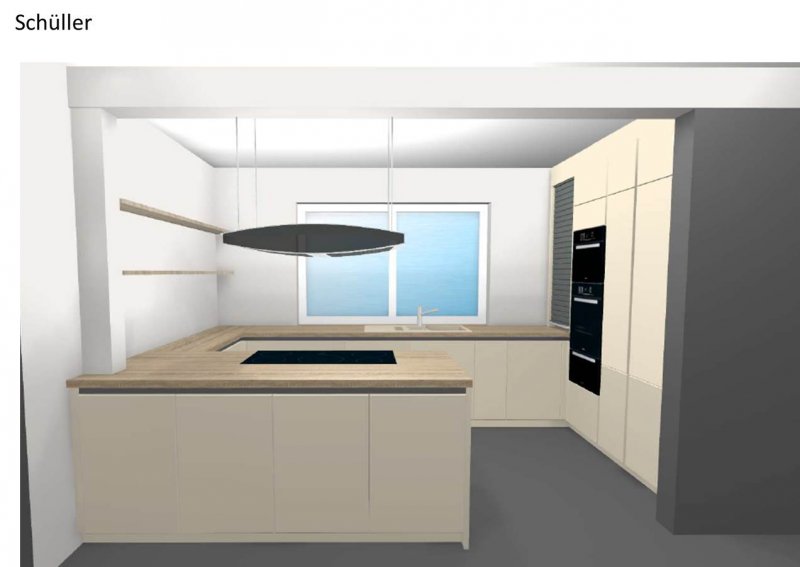 Und vorm Kochfeld stehend ist nur ein Schrank blockiert außerdem bietet die Halbinsel so noch ein schönes freies Ende.