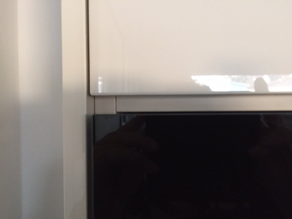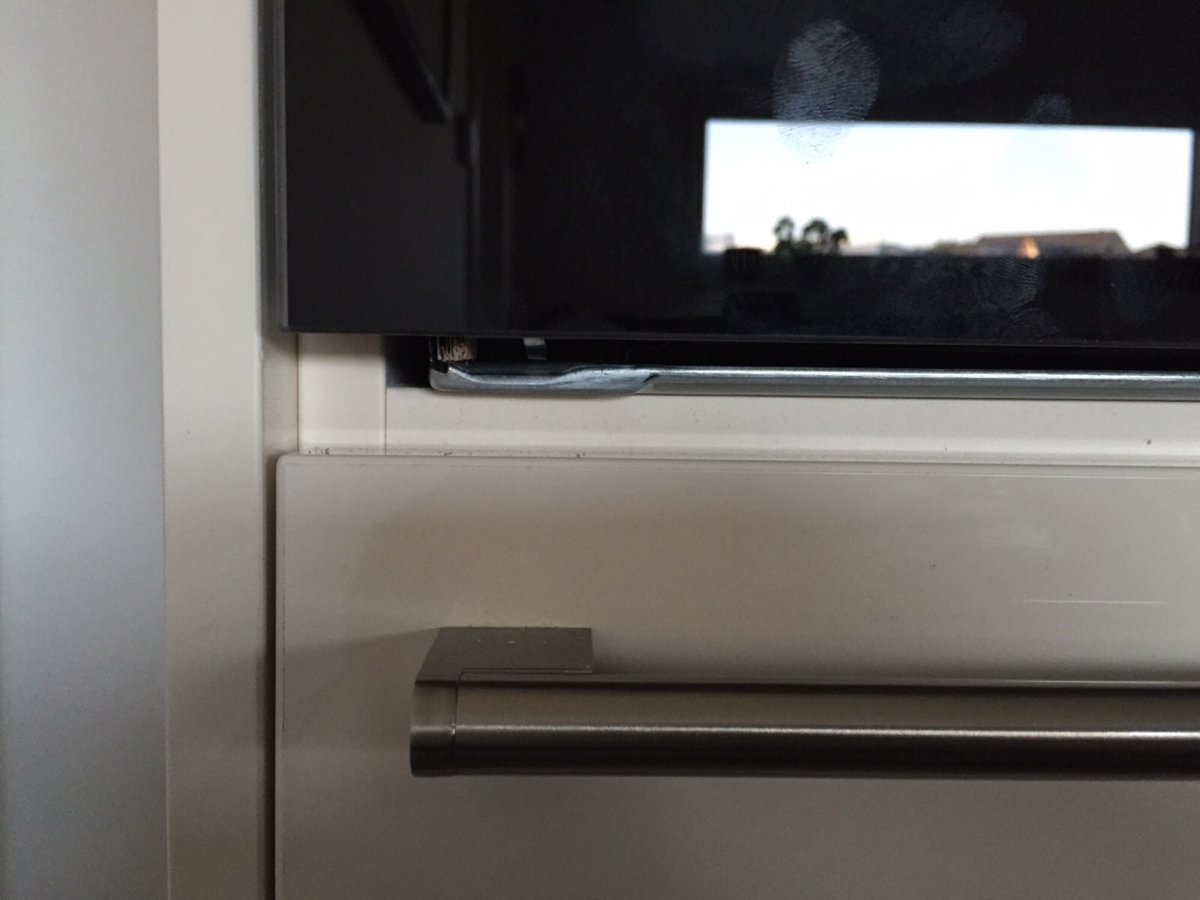 Nun will ich das gute Stück in dem dafür vorgesehenen (und lt. Küchenbauer auch passenden) Schrankfach einbauen, stelle aber fest, dass das Fach knapp 10 mm zu hoch ist, d.h. ich habe über der vorderen Zierblende einen unschönen Spalt.