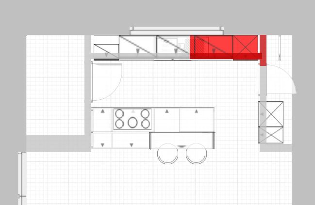 - 60 cm Durchgang in die Speis durch einen Küchenschrank