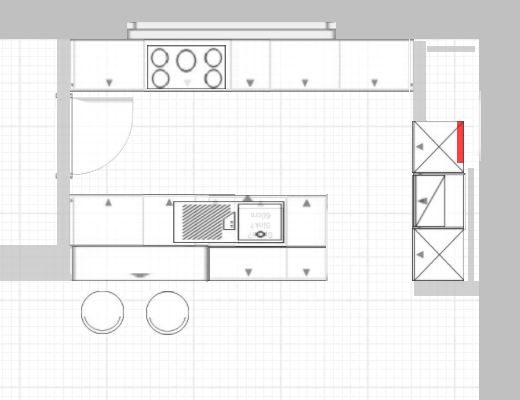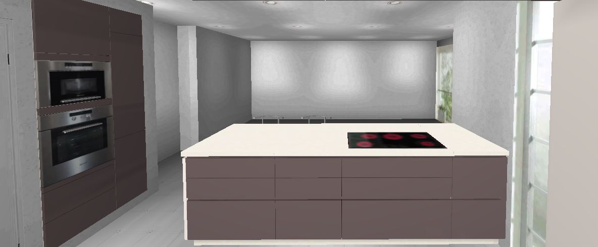 So viel Stauraum brauchen wir auch gar nicht. Außerdem steht für mich nach längerem Überlegen mittlerweile fest, dass die Spüle in die zu verlängernde Insel kommt und der Herd vor's Fenster. Aber nicht mittig, sondern, dass auf einer Seite noch viel zusammenhängende Fläche ist. Da muss ja auch noch irgendwo die Kaffeemaschine hin ;-)