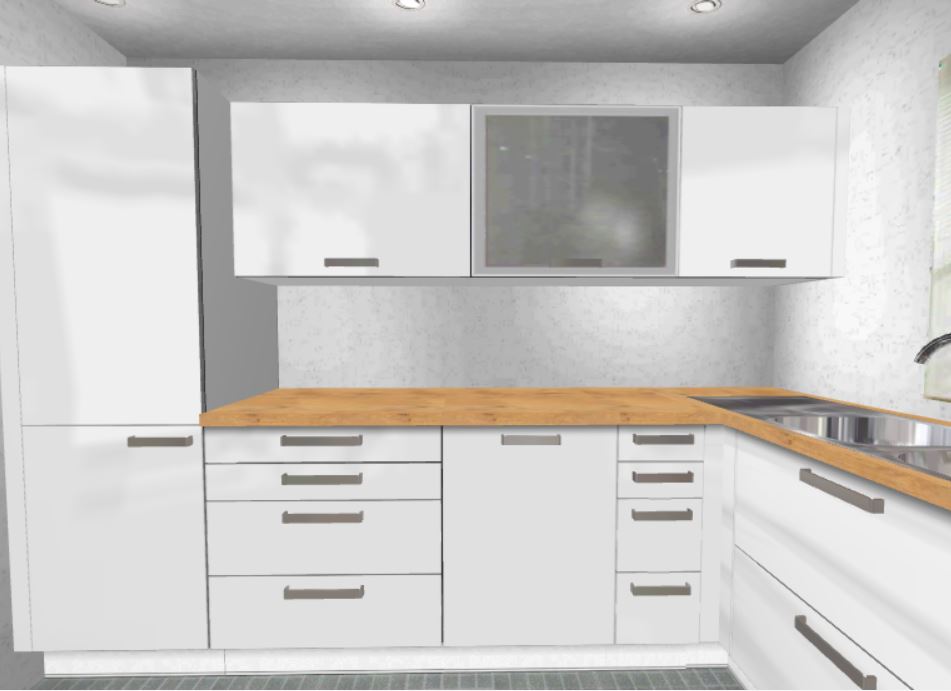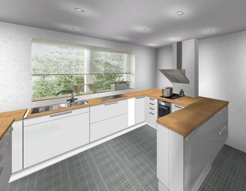 Die alte Küche (IKEA ) hat L-Form und war eigentlich immer ein wenig knapp. Jetzt haben wir bei einer anderen Familie in einem identischen Reihenhaus eine neue Küche in U-Form gesehen, was uns sehr gefallen hat und wirklich zusagt.