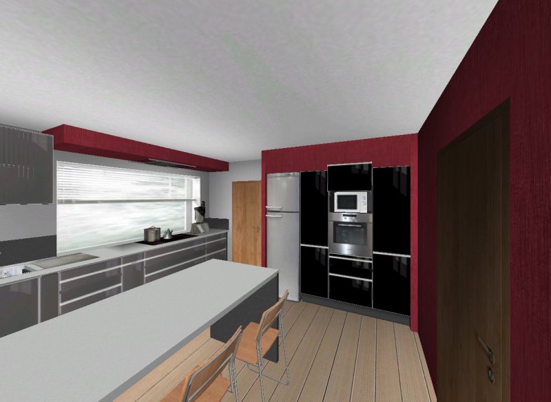 Eine übertiefe Zeile am Fenster ist aber wohl nicht möglich, wenn die Tür nicht verändert werden darf. Schiebetüren fänd ich persönlich auch besser. Hab ich im Alnoplaner aber nicht hinbekommen und ich weiß auch nicht, was die Bauherren davon halten.