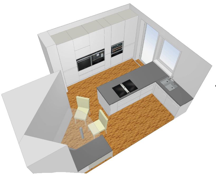 Wir sind nach mehrmonatigen Überlegungen und drei Küchenstudiobesuchen mit Diskussionen und Planungen an einem Punkt angelangt, an dem wir noch einmal frisch neu starten möchten. Letztendlich betrachten wir keinen der Entwürfe der vergangenen Wochen als 100%ig gelungen. Knackpunkt ist die Beibehaltung oder Einbeziehung eines kleinen Vorratsraumes in die Küchenplanung . Möglicherweise bieten aber auch unsere Vorstellungen und die Gegebenheiten vor Ort zu viele Optionen und uns hat bisher die erfahrene und starke Hand gefehlt, die unpraktische oder unharmonische Lösungen kategorisch ausschließt. Sprich, wir haben den Wald vor lauter Bäumen nicht gesehen...