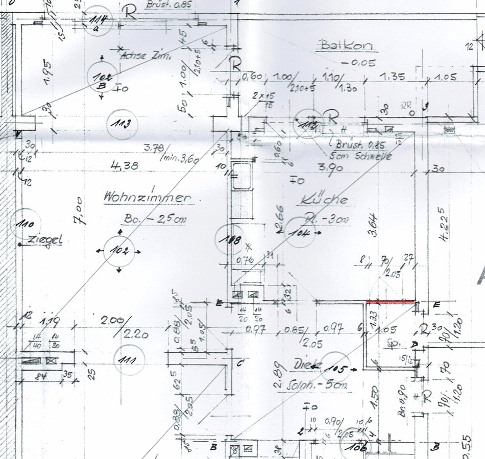 Es macht halt viel Sinn, den Raum mal tatsächlich als vermaßte Skizze einzustellen. Dann werden einem Unrundheiten schneller klar. Und man kann Werte kontrollieren, denn so ein Alnoplan ist schnell mal mit Fehlern angelegt.