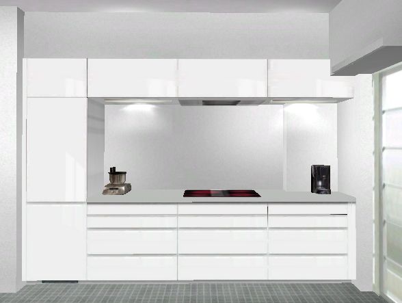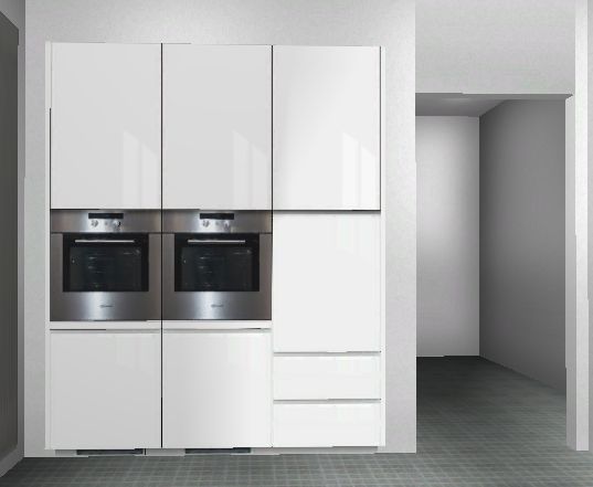 Alle Schränke in der Wand versenkt und ca. 8 bis 10 cm vorstehend. In einem der beiden Schränke BO oder DG muss unten ein Wasser/Abwasseranschluß rein. Das eröffnet auch die Möglichkeit irgendwann mal auf einen DGC mit Wasseranschluß umzusteigen.