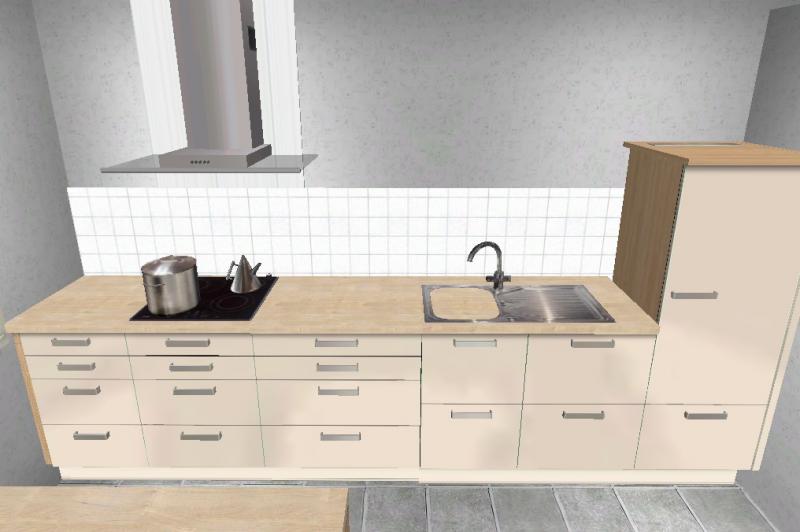 Der Eckschrank ist nur mit Einlegeboden (kein Rondell, Auszug oder so, ist für uns aber ok) und die Drehtür ist dort 50 cm breit. Der Unterschrank daneben ist ebenfalls 50 cm breit. Würdet ihr das breiter machen? Mit 60 cm breiten Standkühlschrank wären die möglichen 2,50 m noch nicht ausgeschöpft...