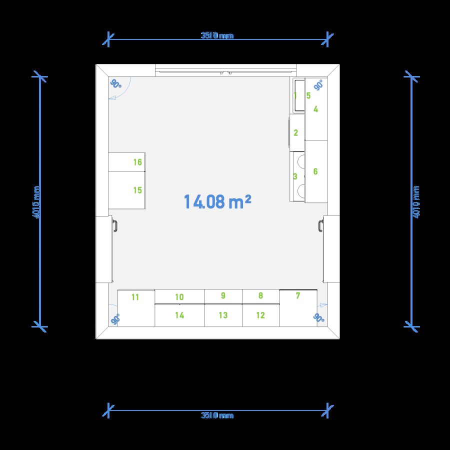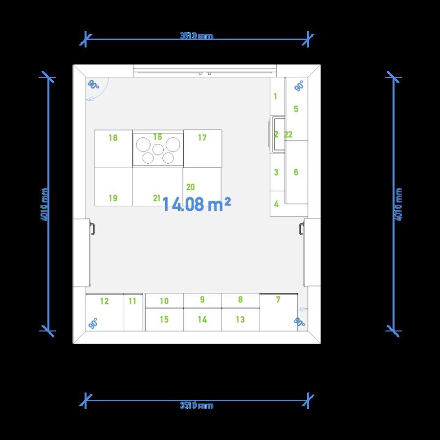 Wir sind dabei ein Haus zu kaufen und in der Wartezeit wollte ich schon mal die Küche planen; auch um einen Überblick über die Kosten und Aufwand zu bekommen. Das Haus hat ein Appartement was von meiner Mutter bezogen wird und wir wollen und die Küche teilen. Deswegen die 2 Türen. Ich hab 2 Versionen schon mal geplant, die mit den Türen gegenüber voneinander wäre die Variante wie die Türen jetzt sind, die andere mit einer versetzten Tür. Wasseranschlüsse sind noch keine vorhanden, weil der Raum als Esszimmer geplant war, werden aber von der Küche rüber gelegt.