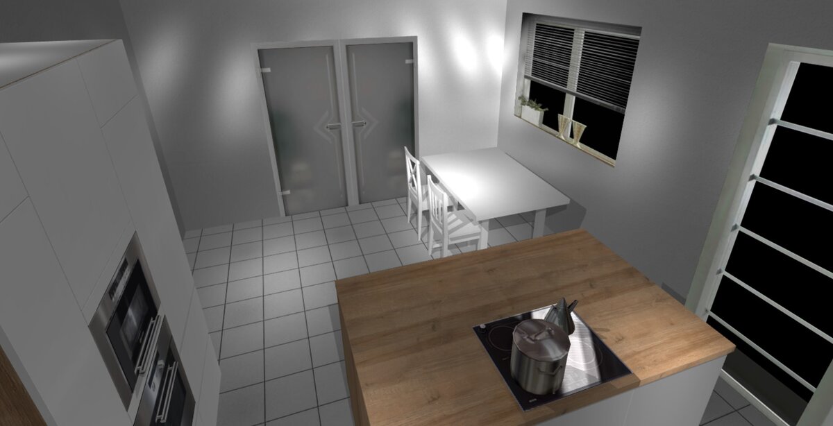 Ich habe mit ALNO Planer versucht, ein passendes Modell zu erstellen. Ich konnte die Fenstergrößer nicht genau eingeben, das Fenster am Tisch ist eigentlich ein Sitzfenster mit zwei Sitzflächen. Einfachheitshalber habe ich erstmal nur eine Thekenhöhe genommen. Bei Variante 1 könnte man zwischen den zwei Seitenschränken einen schmalen Durchgang (zB eine Falttür) zu Speisekammer planen. Bei Variante zwei hätte man evtl mehr Seitenschränke/Stauraum, hat dann aber die tote Ecke. Mir gefällt Variante 1 besser, ich weiß allerdings nicht, ob die Anordnung von Spüle/Kochfeld/Ofen/Geschirrspüler /Kühlschrank alltagstauglich ist. Sind die Gänge breit genug?